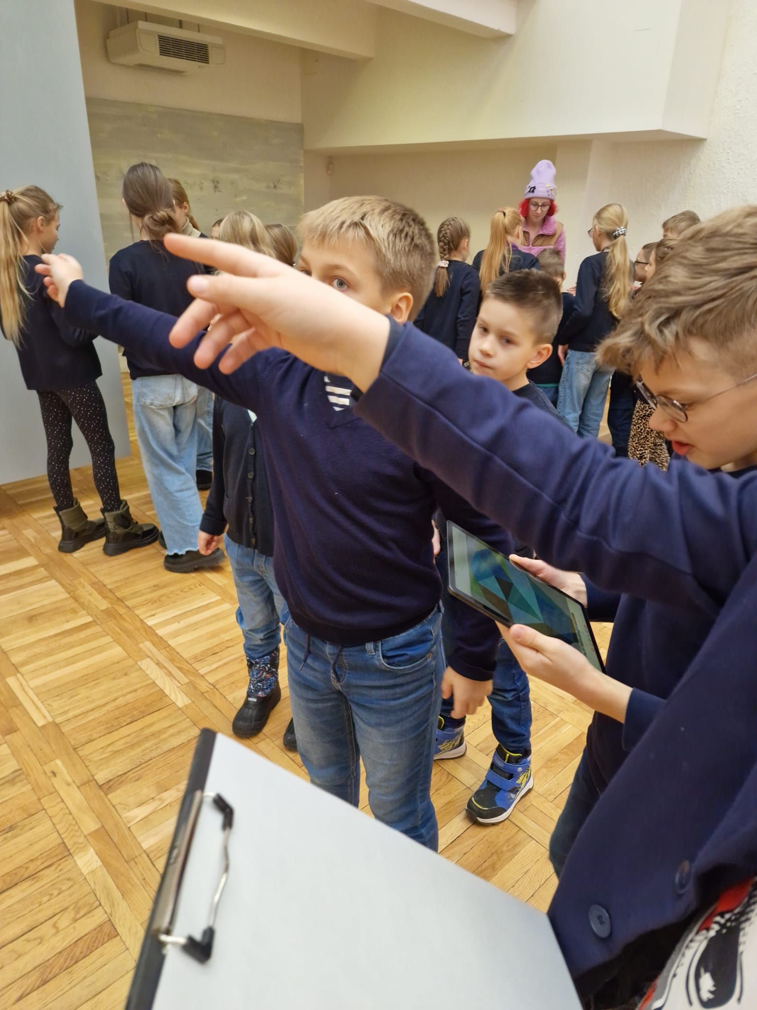 Ką mums pasakoja paveikslas? Kaip jis sukurtas? Kokią žinutę siunčia? Tai ir bandėme išsiaiškinti kartu su edukatoriumi praktinio užsiėmimo metu. Naudodamiesi planšetėmis vaikai mokėsi atidžiai apžiūrėti ekspoziciją, atrasti svarbiausius paveiklsų kodus, atlikti kitas kūrybines užduotis, naudodamiesi parengtais gidais.Edukacijos pabaigoje kiekvienas mokinys pasigamino po įsegamą ženkliuką.